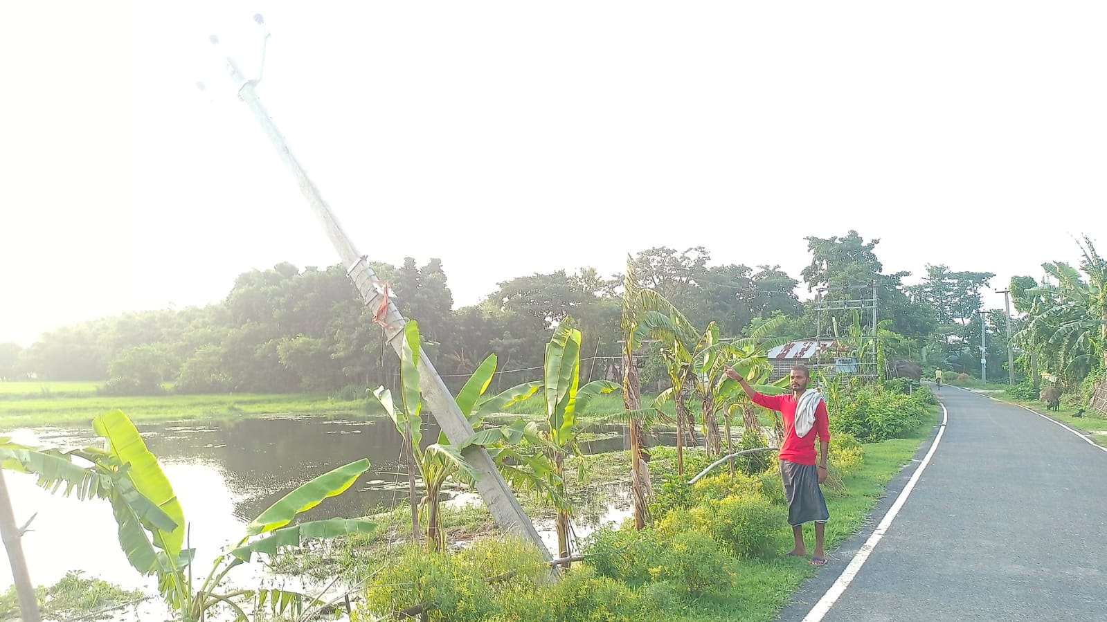 बड़ी हादसा को निमंत्रण दे रहा झुका पोल