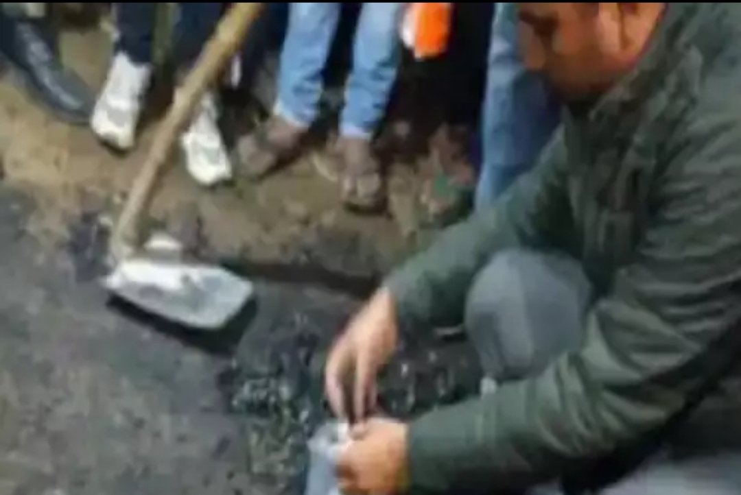 बिजनौर:- उद्घाटन के लिए नारियल पटका तो नारियल की जगह टूट गई सड़क, जांच के आदेश ।