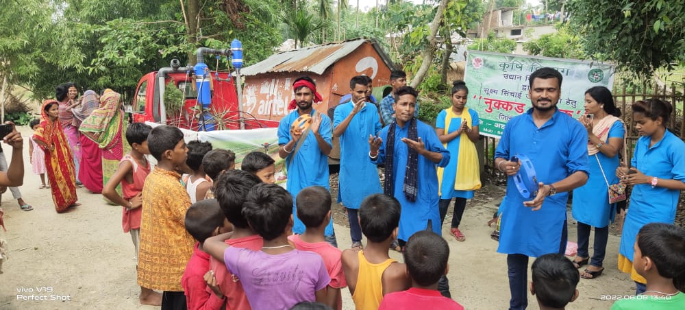 नुक्कड़ नाटक कर ड्रिप सिंचाई यंत्र से पटवन के लिए लोगों को किया जागरूक ।