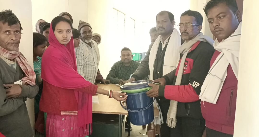 मुखिया ने अपशिष्ट प्रबंधन के क्रियान्वयन को लेकर 400 बाल्टिन का किया वितरण ।