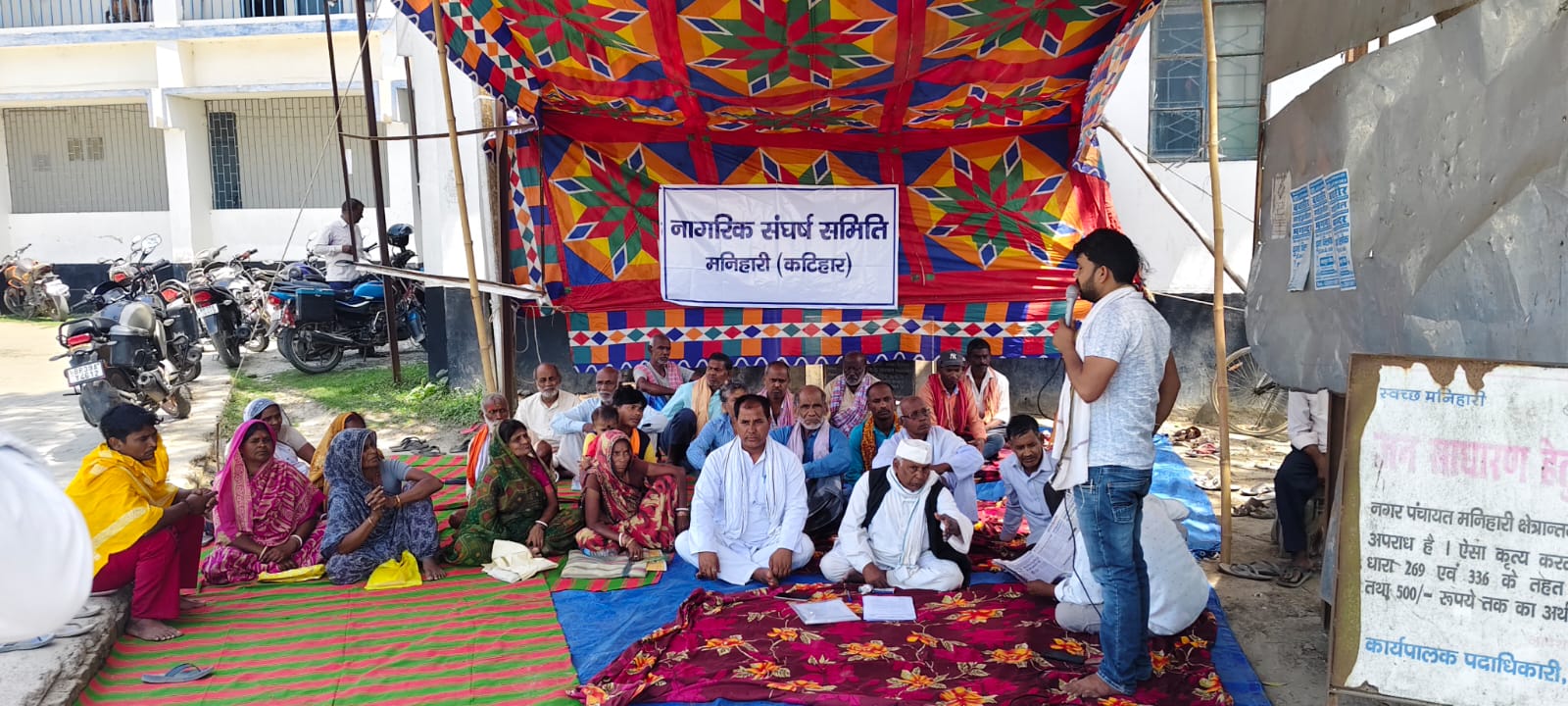 विभिन्न मांगों को लेकर नागरिक संघर्ष समिति का मनिहारी अनुमंडल कार्यालय पर धरना