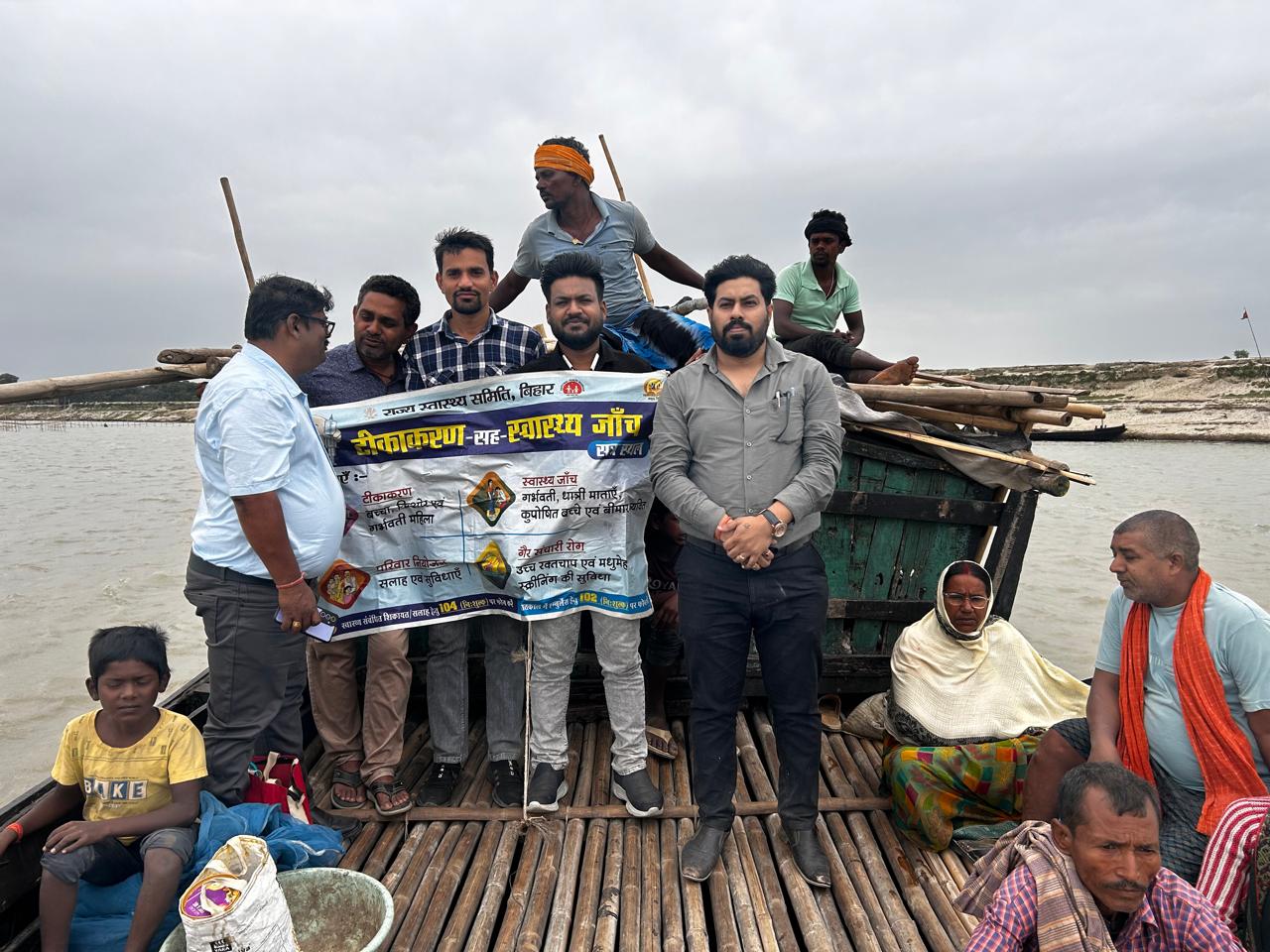 मौसम की बाधा के बावजूद नाव से गोबराही दियारा पहुंची मेडिकल टीम, टीकाकरण व स्वास्थ्य जांच सम्पन्न