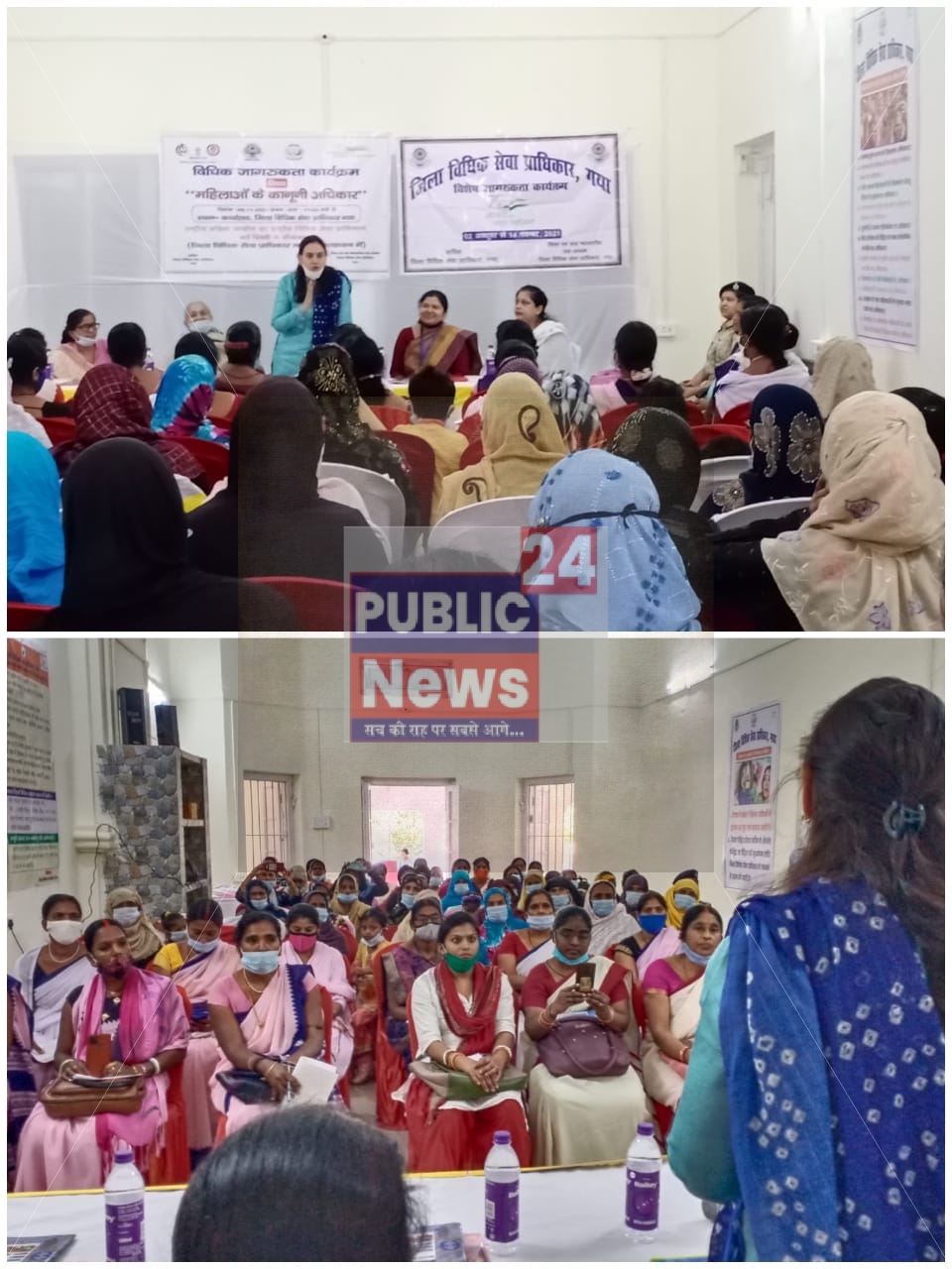 पैन इंडिया आउटरीच कैम्पेन के तहत आज दिन शनिवार को महिलाओं के कानूनी अधिकार विषय पर विधिक जागरूकता का प्रशिक्षण शिविर का आयोजन जिला विधिक सेवा प्राधिकरण, गया के कार्यालय सभागार में किया गया। यह कार्यक्रम राष्ट्रीय महिला आयोग के सहयोग से संपन्न हुआ इस कार्यक्रम में 60 महिलाओं का समूह बनाकर उन्हें प्रशिक्षित किया गया। महिलाओं के समूह में शिक्षिकाएं आगनबाडी कार्यकर्ता हैं आशा जी दिया एवं जीविका समूह की महिलाओं को सम्मिलित किया गया। यह महिलाएं अब अपने क्षेत्र की महिलाओं के उनके अधिकारों के बारे में जागरूक करेगी। इस जागरूकता से प्रशिक्षण शिविर में महिलाओं के संपत्ति का अधिकार, यौन हिंसा, घरेलू हिंसा की शिकार महिलाओं के लिए उपलब्ध कानूनी प्रावधान बाल विवाह से बचाव, कन्या भ्रूण हत्या, तेजाब हमला, बलात्कार, यौन उत्पीड़न, आदि से पीड़ित महिलाओं के लिए उपलब्ध मुआवजा एवं चिकित्सा प्रावधान के बारे में प्रशिक्षित किया। कार्यक्रम का उद्घाटन अपर जिला एवं सत्र न्यायाधीश सह सचिव जिला विधिक सेवा प्राधिकार श्रीमती अंजू सिंह एवं प्रसिद्ध महिला समाजसेवी श्रीमती गीता देवी ने दीप प्रज्वलित कर किया। मंच संचालन कुमारी सुमन सिंह पैनल अधिवक्ता ने किया। इस मौके पर महिला हेल्पलाइन से पदाधिकारी आरती कुमारी और पैनल अधिवक्ता प्रमिला कुमारी भी मौजूद थी। सचिव महोदय ने बताया कि महिलाओं के कानूनी अधिकार के प्रति महिला को ही सजग रहना होगा उन्होंने महिलाओं के कानूनी अधिकार जैसे कन्या भ्रूण हत्या के खिलाफ अधिकार, कामकाजी महिलाओं का मातृत्व संबंधी अधिकार, पति अथवा रिश्तेदारों के खिलाफ घरेलू हिंसा से सुरक्षा का अधिकार, कार्यस्थल पर छेड़छाड़ यौन उत्पीड़न से सरंक्षण का अधिकार, पुरुषों के समान पारिश्रमिक का अधिकार पर विस्तार पूर्वक चर्चा किया। प्रसिद्ध समाजसेवी श्रीमती गीता देवी ने बताया की बहु को बेटी बनाकर महिलाएं बहु को बेटी बनाकर महिलाओं के अधिकार की सुरक्षा किया जा सकता है। सुर्यास्त पश्चात से सूर्योदय पूर्व तक महिला बंदियों को गिरफ्तार नहीं किया जा सकता है। महिलाओं के स्वास्थ्य के अधिकार के बारे में उन्होंने विस्तार पूर्वक जानकारी दिया। पैनल अधिवक्ता प्रमिला कुमारी ने जागरूकता कार्यक्रम सह प्रशिक्षण के दौरान बताया कि पति अथवा रिश्तेदारों के द्वारा अपमान अनादर गाली-गलौज मारपीट करना चोट पहुंचाना घर से निकालना पैसा ना देना दहेज के लिए बार-बार तंग करना और किसी से नहीं मिलने देना घरेलू हिंसा का रूप होता है। इसके लिए आप जिला विधिक सेवा प्राधिकार में आवेदन दे सकते हैं।नजदीकी थाना से संपर्क कर सकते हैं और महिला हेल्पलाइन 181 पर संपर्क कर सकते हैं।पैनल अधिवक्ता कुमारी सुमन सिंह ने विस्त