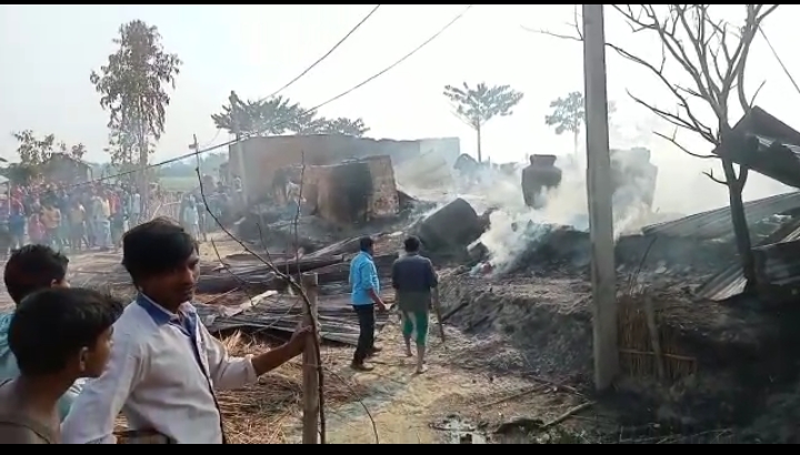 अमदाबाद प्रखंड में आए दीन आगलगी की घटना लगातार हो रही है। अमदाबाद नया टोला त्रिमुहानी गांव में खाना बनाने के क्रम में अचानक आग लग गई जिससे देखते ही देखते एक दर्जन से अधिक घर जलकर राख हो गया। ग्रामीणों के द्वारा सुचना पर दमकल विभाग की टीम मौके पर पहुंचकर आग को बुझाने में जुट गई। वही आग को जब तक बुझाते तब तक काफी देर हो चुकी थी। वही घर पर रखा खाने का अनाज से लेकर पहनने का वस्त्र सहित बकरी एवं घर पर रखा सारा सामान जलकर राख हो गया । पीड़ित परिवार ने बताया की हम लोग खाना बनाने रहे थे इसी बीच आचानक आग लग गई। आग देखने बाद ग्रामीणों में अफरा तफरी का माहौल हो गया वही पीड़ित परिवार खुले आसमान के निचे रहने को मजबूर है। पीड़ित परिवार ने सरकार से सहायता की मांग की है ।मौके पर पार दियारा मुखिया प्रतिनिधि एजाबुल हक ने बताया कि इस अग लगी में काफी नुकसान हुआ है ।