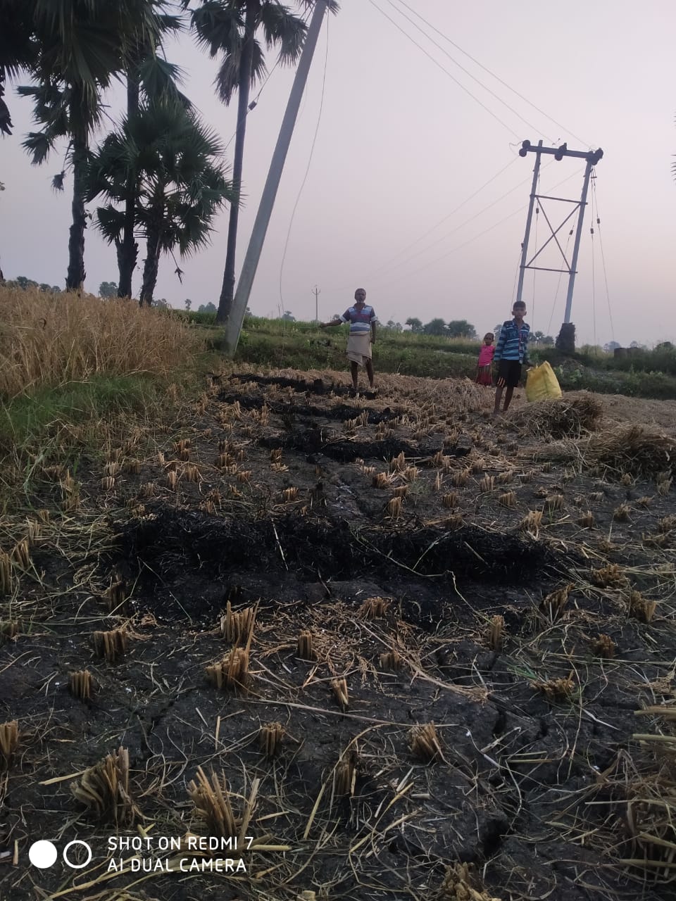 बिजली के शॉर्ट सर्किट होने से जला धान का फसल