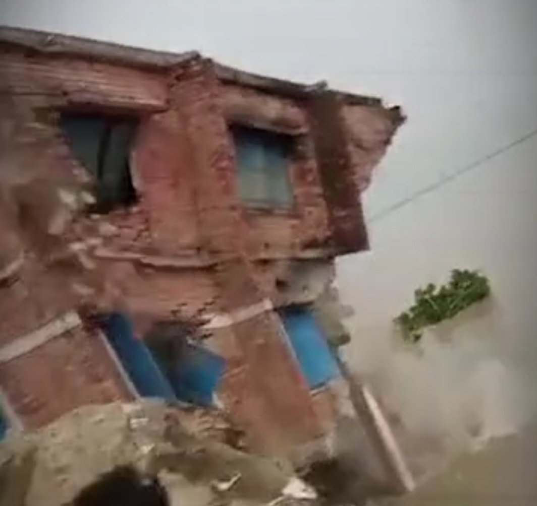 चंद सेकंडों में गंगा में समाई स्कूल बिल्डिंग, देखते ही देखते धराशायी हुई 2 मंजिला इमारत ।