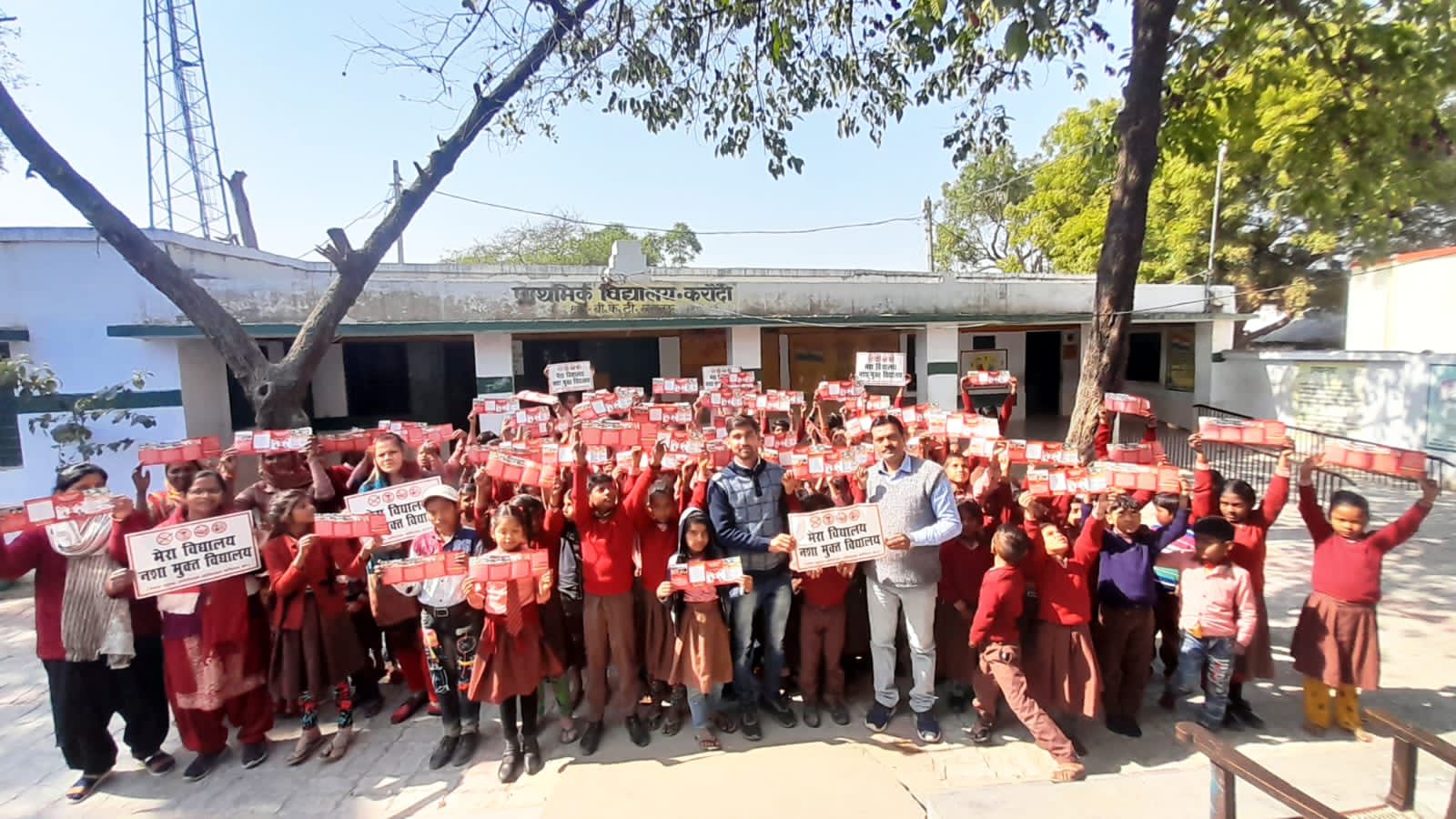 प्राथमिक विद्यालय, करौंदी में छात्रों व अध्यापकों ने लिया जीवन भर नशामुक्त रहने का संकल्प ।