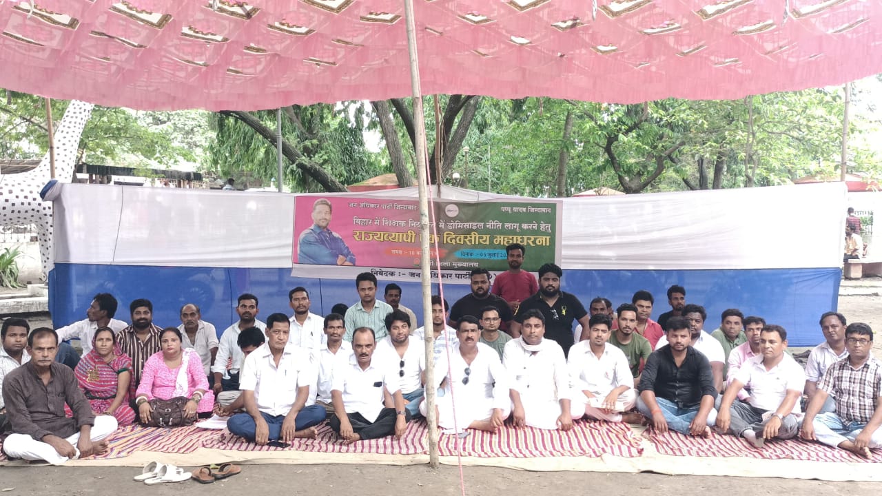 जन अधिकार पार्टी (लो०) के राष्ट्रीय अध्यक्ष राजेश रंजन उर्फ पप्पू यादव के आवाह्न पर पूरे बिहार के साथ-साथ कटिहार में भी शिक्षक बहाली नियमावली में संशोधन कर डोमिसाइल नीति लागू करने हेतु एक दिवसीय धरना प्रदर्शन जिला मुख्यालय के समीप आयोजन किया गया। इस धरना प्रदर्शन की अध्यक्षता जाप के प्रदेश महासचिव वकील दास ने किया। जबकि संचालन पार्टी के प्रदेश महासचिव नैयर मसूद खान ने किया। मौके पर अपने संबोधन में प्रदेश महासचिव वकील दास ने कहा कि डोमिसाइल नीति को हटाना बिहार के युवाओं के साथ विश्वासघात है। इससे बिहार के युवाओं के लिए अवसर की कमी हो जाएगी। यह बिहार के युवाओं का अपमान है। गरीबी और बेरोजगारी में बिहार सबसे अव्वल हैं। ऐसे में शिक्षक बहाली में खासकर डोमिसाइल नियम लागू होनी चाहिए और बिहार के युवाओं को ही बिहार में नौकरी मिलनी चाहिए। वही प्रदेश महासचिव नैयर मसूद खान ने कहा कि प्राथमिक शिक्षा में शिक्षक बाहर के आ गए तो, बच्चों को वह सही से पढ़ा नहीं पाएंगे।क्योंकि बच्चों को उनकी मातृभाषा में पढ़ाने की आवश्यकता होती है। बाहर के शिक्षक यहां की स्थानीय बोली को सही से बोल नहीं पाएंगे और बच्चे भी समझ नहीं पाएंगे। उन्होंने कहा कि बिहार के शिक्षा मंत्री बिहार का अपमान कर रहे हैं। इसलिए आज शिक्षक अभ्यर्थियों के समर्थन में यह धरना प्रदर्शन आयोजित की गई हैं। बिहार में योग्य युवा एवं युवतियों का भरमार हैं। इसलिए शिक्षक नियुक्ति में बिहार के युवाओं को ही प्राथमिकता मिलनी चाहिए। महिला जिला अध्यक्ष सोनी कुमारी ने कहा कि बिहार सरकार को शिक्षक नियुक्ति नियमावली में संशोधन कर डोमिसाइल नीति लागू करना होगा नहीं तो आगे उग्र आंदोलन किया जाएगा। मौके पर प्रो० सुनील भारती, तौसीफ अख्तर, सोनू अफजल, नंदलाल यादव, चंदन यादव,नूर आलम, शुभम सिंह, रवि यादव, अब्दुल शकीम, शैलेश उर्फ पप्पू, रवि कर्ण, अजय पोद्दार,अनिल साह, इंद्रदेव मेहता, पारो देवी, इसराउल हक सहित अन्य प्रमुख रूप से मौजूद थे।