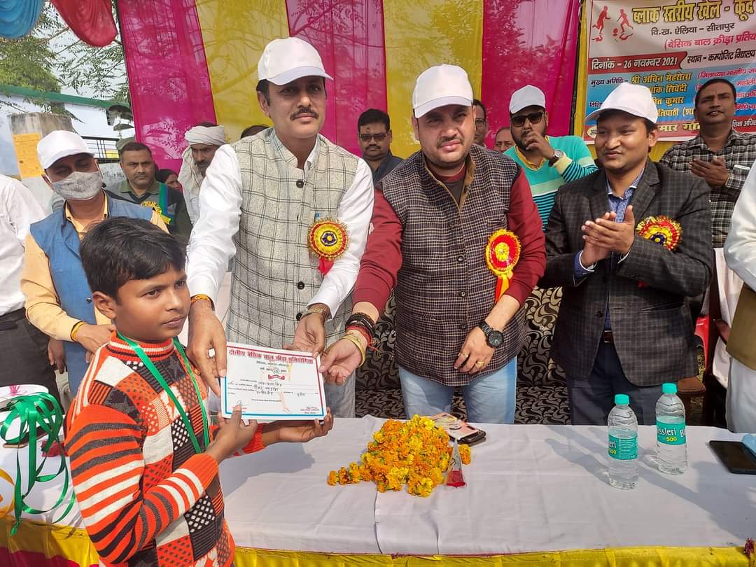 जनपद के विकास क्षेत्र एलिया के विद्यालय पीतपुर मे एक खेल प्रतियोगिता का आयोजन किया गया, इस बेसिक बालक्रीड़ा प्रतियोगिता एवम शैक्षिक समारोह में आयोजित कार्यक्रम में भाजपा जिला अध्यक्ष अचिन महरोत्रा के साथ आदित्य सिंह भी उपस्थित रहे, और विजेता बच्चों के उत्साहवर्धन हेतु उनका मनोबल बढ़ाया ।इस कार्यक्रम में विजयी प्रतिभागियों को पुरस्कार वितरित किये गये, विजयी पुरस्कार को प्राप्त करने के बाद विजेताओं के चेहरे पर चमक दिखी।इस खेल प्रतियोगिता के पुरस्कार वितरण कार्यक्रम में ब्लॉक प्रमुख संजू सिंह,जिला बेसिक शिक्षा अधिकारी अजीत कुमार,खंड शिक्षा अधिकारी उमेश गौतम तथा ब्लॉक के कई शिक्षकगण भी उपस्थित रहे।