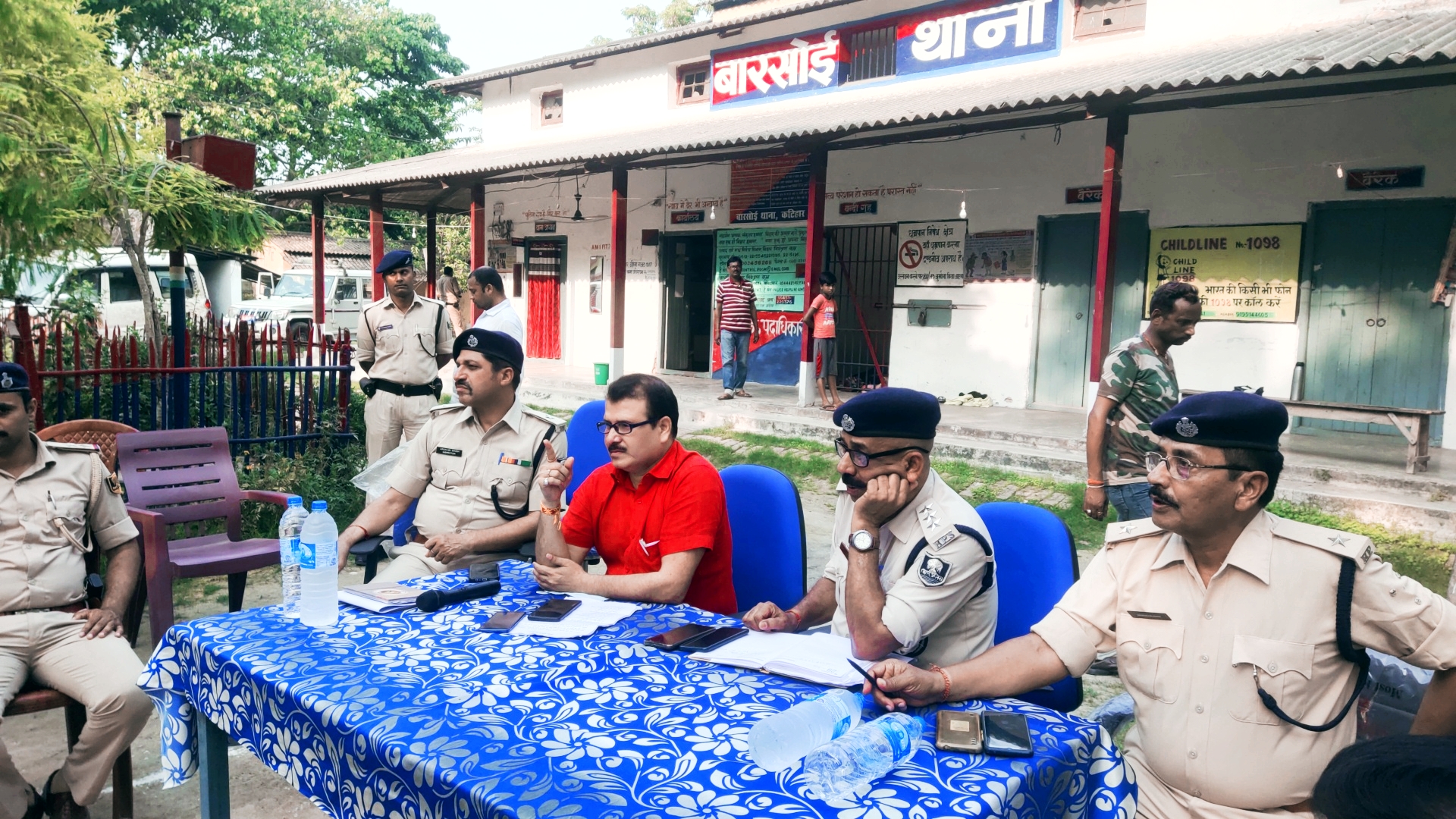 बारसोई थाना प्रांगण में थानाध्यक्ष अरविंद कुमार की अध्यक्षता में मंगलवार की दोपहर आगामी रामनवमी के दिन शोभायात्रा को लेकर शांति समिति की बैठक आयोजित की गई । इस दौरान एसडीओ राजेश्वरी पांडेय एवं एसडीपीओ प्रेमनाथ राम मौजूद रहे । बैठक को संबोधित करते हुए थानाध्यक्ष ने उपस्थित जनप्रतिनिधि एवं पूजा कमेटी के सदस्यों से रामनवमी शोभा यात्रा को शांतिपूर्ण माहौल में संपन्न कराने को लेकर विचार विमर्श किया। जिसमें शोभायात्रा की रूट चार्ट, प्रशासन की मौजूदगी, डीजे पर पाबंदी सहित कमेटी द्वारा लाइसेंस लेने की बातों पर चर्चा हुई । इस दौरान एसडीओ ने कमेटी सदस्यों को स्पष्ट रूप से निर्देश दिया कि गृह मंत्रालय द्वारा जारी गाइडलाइंस के तहत ही पूजा को संपन्न कराना है और असामाजिक तत्वों एवं हुड़दंगियों पर प्रशासन की पैनी नजर रहेगी। इस दौरान युवा नेता सागर साह ने अपने कमेटी सदस्यों के तरफ से प्रशासन को आश्वस्त कराया कि प्रत्येक वर्ष की भांति इस वर्ष भी शोभा यत्रा शांतिपूर्ण ढंग से मनाया जाएगा प्रशासन को शिकायत का मौका नहीं दिए जाएंगे । वहीं एसडीपीओ ने उपस्थित लोगों को संबोधित करते हुए कहा कि डीजे पर प्रतिबंध है और प्रशासन के जवान एवं अधिकारी शोभायात्रा के दौरान चौक चौराहे पर मौजूद रहेंगे। वहीं उन्होंने कड़ी शब्दों में शोभायात्रा के दौरान नशा सेवन करने वाले लोगों को शामिल नहीं होने की चेतावनी दी। वही गोरखपुर मंदिर के अध्यक्ष पिंटू यादव ने शोभा यात्रा के दौरान रूट चार्ट के दरमियान भारी वाहनों को आवागमन हेतु रोक लगाए जाने की परामर्श दिया । जदयू नेता मामून रशिद ने प्रशासन को आश्वस्त किया कि शोभा यात्रा शांतिपूर्ण संपन्न कराने के लिए भरपूर सहयोग करेंगे । इस अवसर पर अंचल निरीक्षक अरूण कुमार, वार्ड पार्षद मेघनाथ मंडल, दीपक चंद्र दास, पूर्व मुखिया संतोष सिंह , आयूष कुमार, मेंहदी हसन, संजय कुमार साह, मूनिव चौधरी, रौशन अग्रवाल, अनिल भगत सहित अन्य प्रमुख रूप से उपस्थित रहे।
