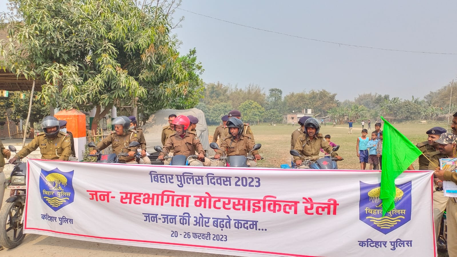 बिहार पुलिस दिवस के अवसर हसनगंज पुलिस ने निकाली जन-सहभागिता मोटरसाइकिल रैली