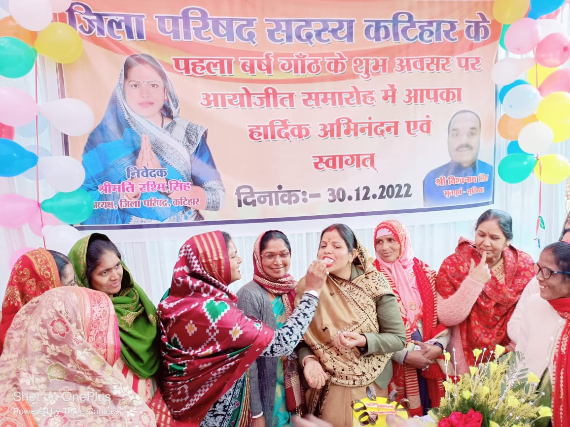 कटिहार जिला परिषद अध्यक्षा रश्मि सिंह की अध्यक्षता में कोलासी स्थित मनरेगा पार्क में 30 दिसंबर दिन शुक्रवार जिला परिषद कटिहार के एक वर्ष पूर्ण होने पर केक काट कर सभी जिला परिषद सदस्यों का स्वागत सह अभिनन्दन समारोह रखा गया। इस स्वागत समारोह में जिले के सभी क्षेत्रों के जिला परिषद, जिला परिषद कार्यालय के सभी कर्मचारी शामिल हुए । इस दौरान जिला परिषद अध्यक्ष रश्मि सिंह ने सभी सदस्यों को माला पहना कर डायरी व कलम देकर सभी जिला परिषद सदस्यों व कार्यलय कर्मचारियों को सम्मानित किया गया । वही जिला परिषद अध्यक्ष रश्मि सिंह अपने संबोधन में कहा कि इस अयोजन का उद्देश्य सभी जिला परिषदों का स्वागत व अभिनंदन कर जिला परिषद कार्यकाल के पूरे एक साल पूर्ण होने पर सभी सद्स्यों को बधाई और आगे भी इसी तरह सभी सदस्य मिल कर जिला परिषद् के द्वारा होने वाले विकास कार्यों में अपनी अपनी सहभागिता बनाए रखे। उन्होंने कहा के वित्तीय वर्ष 22-23 में आगामी योजनाओं में सभी सदस्य व कार्यालय के कर्मचारी पूर्ण रूपेण अपना साथ दे ताकि धरातल पर योजनाओं को जल्द से जल्द उतारने में हम सभी सफल हो । जिला परिषद अध्यक्ष ने सभी सदस्यों को आने वाले नव वर्ष की हार्दिक बधाई भी दी साथ ही उन्होंने कहा कि हम सभी को मिलकर कुछ ऐसा काम करना है कि पूरे देश में कटिहार जिला परिषद को मिसाल के रूप में देखा जाए और हम सभी मिलकर कटिहार जिला परिषद को मिसाल के रूप में कायम करेंगे । मंच का संचालन जिला परिषद प्रतिनिधि मनोज ऋषि ने किया। वही पूर्व मुखिया सह जिला परिषद अध्यक्ष प्रतिनिधि विश्वनाथ सिंह ने कहा कि जिस तरह आप सभी सदस्यों ने पुरे साल विकास कार्यों को धरातल पर उतारने की सफलतम प्रयास किया । इसी तरह आगे भी अपनी हाथो को हमारे हाथों से मिलाकर चले ताकि आने वाले नव वर्ष में आगामी विकास कार्यों को ज्यादा से ज्यादा धरातल पर करने में हम सभी सफल हो, साथ ही कहा की बीते वर्ष किसी भी सदस्यों का उनके क्षेत्र में विकास कार्यों में त्रुटि वस अगर कोई कार्य नहीं हो पाया हो तो उसे आगामी नव वर्ष पूर्ण किया जाएगा ।