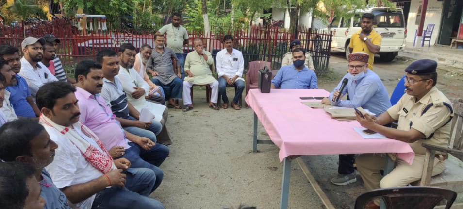 दुर्गा पूजा को लेकर बारसोई थाना में जनप्रतिनिधियों के साथ शांति समिति की हुई बैठक ।