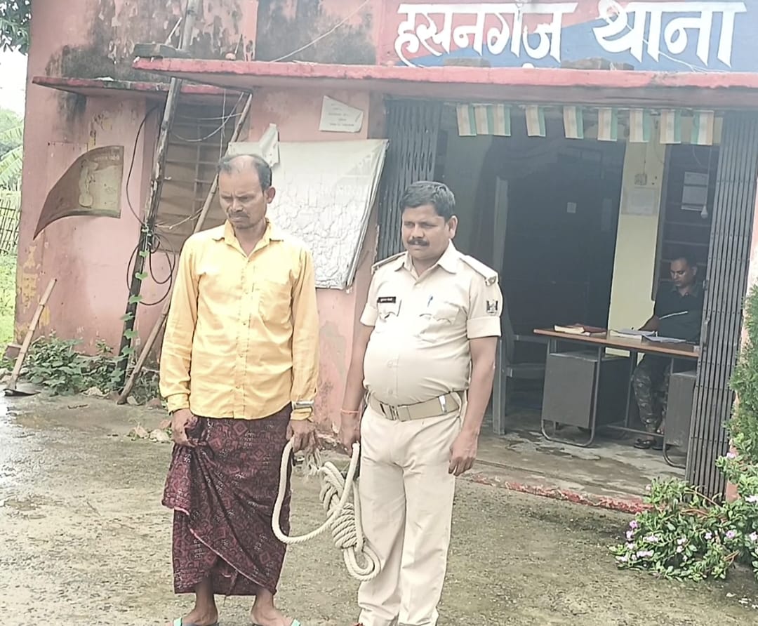हसनगंज थाना अंतर्गत कालसर पोखरटोल गांव में हसनगंज पुलिस ने विशेष छापेमारी अभियान चलाकर एक शराब तस्कर को पांच लीटर चुलाय शराब के साथ गिरफ्तार कर न्यायिक हिरासत में भेज दिया। इस संदर्भ में थानाध्यक्ष अनिस कुमार ने बताया कि विशेष छापेमारी अभियान चलाकर फकीर चंद उरांव पिता रामनारायण उरांव को कालसर पोखरटोल गांव से पांच लीटर देसी शराब के साथ गिरफ्तार किया गया है। उन्होंने ने कहा कि उक्त शराब कारोबारी पुलिस को देखते ही भागने लगा। जिसे पुलिस बल के सहयोग से खदेर कर पकड़ा गया। पुलिस ने शराबबंदी अभियान तहत उक्त शराब तस्कर को पांच लीटर देसी शराब के साथ गिरफ्तार कर लिया। साथ ही शराब तस्कर के विरुद्ध शराबबंदी अधिनियम तहत मामला दर्ज करते हुए न्यायिक हिरासत में भेज दिया गया। मौके पर थानाध्यक्ष अनीस कुमार ने बताया कि क्षेत्रों में शराबबंदी अभियान की सफलता को लेकर पुलिस काफी सक्रिय है। शराब पीने व बेचने वालों पर पुलिस की पैनी नजर बनी रहती है। इस अवसर पर पुलिस बल आदि मौजूद रहे।