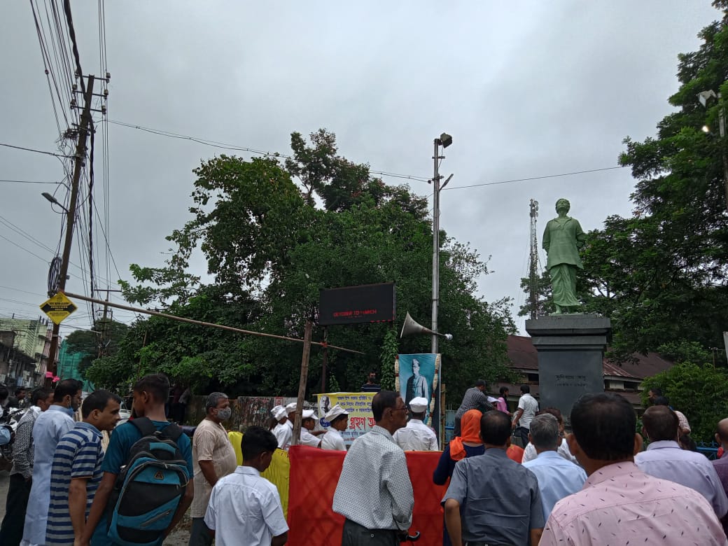 আজ নেতাজী সুভাষ চন্দ্ৰ বসুর নেতৃত্বে ১৯৪৩ সালের ২১ অক্টোবর গঠিত আজাদ হিন্দ সরকারের ৭৮ তম বর্ষপূর্তি উপলক্ষে শিলচরের ক্ষুদিরাম মূর্তির পাদদেশে নেতাজী সুভাষচন্দ্র বসুর ১২৫ তম জন্মবর্ষ উদযাপন সমিতি, কাছাড় এর উদ্যোগে শপথ গ্রহণ অনুষ্ঠান আয়োজিত হয়। অনুষ্ঠানের সূচনায় উদ্দেশ্য ব্যাখ্যা করে বক্তব্য রাখেন সমিতির সম্পাদক প্রাক্তন শিক্ষক সুব্রত চন্দ্র নাথ। তিনি নেতাজীর স্বপ্নের ধর্মনিরপেক্ষ, গণতান্ত্রিক ও সমাজতান্ত্রিক রাষ্ট্র প্রতিষ্ঠার লক্ষ্যে যে শপথ ১৯৪৩ সালের ২১ অক্টোবর আজাদ হিন্দ ফৌজের সামনে পাঠ করেছিলেন তা আজ সেখানে পাঠ করে শোনান। এছাড়াও বক্তব্য রাখেন বিশিষ্ট সমাজকর্মী ও ফরওয়ার্ড ব্লকের জেলা সম্পাদক মিহির নন্দী এবং নেতাজী ফাউন্ডেশনের জেলা সভাপতি প্রাক্তন বাস্তুকার নিহার রঞ্জন পাল। নিহার রঞ্জন পাল তার বক্তব্যে ভারতের স্বাধীনতা সংগ্রামের আজাদ হিন্দ সরকার প্রতিষ্ঠার গুরুত্ব তুলে ধরে বলেন যে সেদিন বৃটিশ সাম্রাজ্যবাদ বুঝতে পেরেছিল যে ভারতের জনগণ নেতাজী সুভাষচন্দ্র বসুর নেতৃত্বে সাম্রাজ্যবাদী শাসনের অবসানে শেষ যুদ্ধে লিপ্ত হয়েছে। পূর্ব এশিয়ার বিভিন্ন দেশে যুদ্ধবন্দী বৃটিশ ভারতের সৈন্যদের নিয়ে গঠিত আজাদ হিন্দ বাহিনী ভারতীয়দের মনে যে আশার সঞ্চার করেছিল তারই পথ ধরে পরবর্তীতে নৌ বিদ্রোহ সংগঠিত হয়। তিনি এও বলেন যে দ্বিতীয় বিশ্বযুদ্ধে বৃটেন জয়লাভ করে ভারতের স্বাধীনতা দিতে বাধ্য হয়েছিল বিপ্লবের ভয়ে। তিনি ছাত্র যুবদের নেতাজীর জীবনের বিভিন্ন দিক নিয়ে ব্যাপক চর্চা করতে আহ্বান জানান। সমিতির অন্যতম সহ – সভাপতি ও সরকারি বালক উচ্চ মাধ্যমিক বিদ্যালয়ের প্রাক্তন অধ্যক্ষ দীপঙ্কর চন্দ মহাশয় উপস্থিত বিভিন্ন সংগঠনের নেতৃবৃন্দ ও জনগনের সামনে নেতাজী সুভাষচন্দ্র বসুর স্বপ্নের ধর্মনিরপেক্ষ, গণতান্ত্রিক ও সমাজতান্ত্রিক রাষ্ট্র প্রতিষ্ঠার লক্ষ্যে আগামীতে সংগ্রাম চালিয়ে যেতে শপথ বাক্য পাঠ করান। আজকের শপথ গ্রহণ অনুষ্ঠানে সমিতির অন্যতম সহ সভাপতি তথা প্রাক্তন অধ্যক্ষ পরিতোষ চন্দ্র দত্ত, অধ্যাপক অজয় রায়, হিল্লোল ভট্টাচার্য, দিলীপ নাথ, চাম্পা লাল দাস, খাদেজা বেগম লস্কর ছাড়াও উপস্থিত ছিলেন এস ইউ সি আই ( কমিউনিস্ট ) দলের জেলা সম্পাদক ভবতোষ চক্রবর্তী, এ আই ডি ওয়াই ও’র জেলা সম্পাদক বিজিত কুমার সিংহ, সারা ভারত মহিলা সাংস্কৃতিক সংগঠনের জেলা সম্পাদিকা দুলালী গাঙ্গুলী, এ আই ডি এস ও’র জেলা সম্পাদক গৌর চন্দ্র দাস, সহ সভাপতি প্রশান্ত ভট্টাচার্য, কোষাধ্যক্ষ পল্লব ভট্টাচার্য, মার্চ ফর সায়েন্স এর মধুমিতা দেব, এ আই ওয়াই এল এর রাজু চৌধুরী সহ অন্যান্যরা।