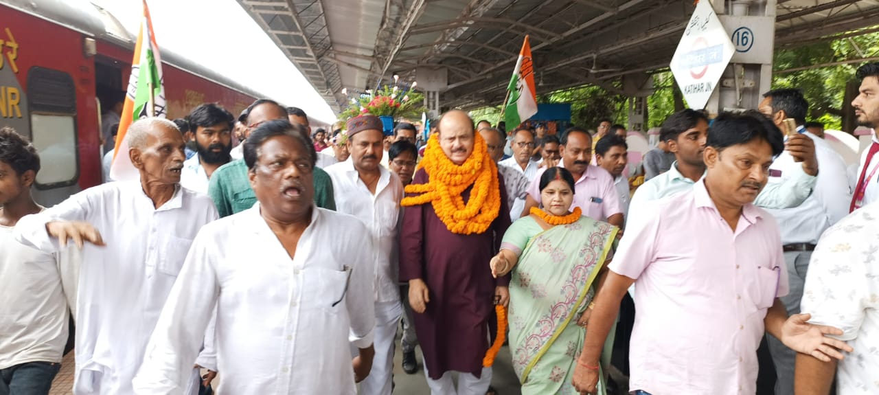 ्कांग्रेस पार्टी के पुनः राष्ट्रीय कार्यकारणी सदस्य बनने के बाद पहली बार पहुंचे तारिक अनवर आगमन पर कांग्रेस कार्यकर्ताओं और समर्थको में काफी हर्ष उल्लास ।फूलमाला और बुके देकर अपने नेता का किया भव्य स्वागत । मौके पर मीडिया से रु बरु हो कहा ,राष्ट्रीय कार्यकारणी में सामिल के लिए सोनिया जी और खड़गे जी का शुक्र गुजार हूं,बिहार में कांग्रेस की खोई हुई प्रतिष्ठा वापस लाने के लिए प्रदेश कमिटी की कोशिश जारी है ,मैं भी उस दिशा में कार्य कर रहा हूं।देश की जनता परिवर्तन के पक्ष में अपना मन बना लिया है।नकली राष्ट्रभक्त का चोला ओढ़े,मेरी माटी मेरा देश का नारा हाश्यप्रद है ,इतिहास गवाह है आजादी के लड़ाई में भारतीय जनता पार्टी की भूमिका नगण्य थी ,महंगाई बेरोजगारी और छलावा देश से छिपी नहीं है ।स्टेशन के बाहर मोटर सायकिल और गाड़ियों का काफिला जुलूस के रूप में पहुंचा सद्भावना भवन । राहुल गांधी जिंदाबाद,मल्लिका अर्जुन खड़गे जिंदाबाद ,तारिक अनवर जिंदाबाद ,कटिहार की जनता जिंदाबाद ,कांग्रेस पार्टी जिन्दाबाद के नारों से गूंजा कटिहार शहर ।मौके पर उपस्थित ,अध्यक्ष सुनील यादव ,पूर्व विधायक सत्यनारायण प्रसाद ,पूर्व विधायक सुनीता देवी,दिलीप विश्वास ,संजय सिंह , बी के ठाकुर ,आफताब आलम, कंचन दास ,नगीना यादव,अल्तमस दीवान,प्रह्लाद गुप्ता ,फिरोज कुरेशी ,पंकज तमाकुवाला ,शंकर साह,सऊद आलम , , मीनाक्षी स्वेता,आम्रपाली यादव , राजेश रंजन मिश्रा,संजय सिंह पुतुल,आनंद सिंह,आनंद सिंह ,मेजर जमाल ,अवधेश मंडल युवा अध्यक्ष साहिल कुमार मन्नी, मो .इस्तियाक आलम,आदिल परवेज रियाज ,सुभाष यादव,नीरज पोद्दार ,मो मासूम,मो आलमगीर मसूद ,राजीव गिरी।