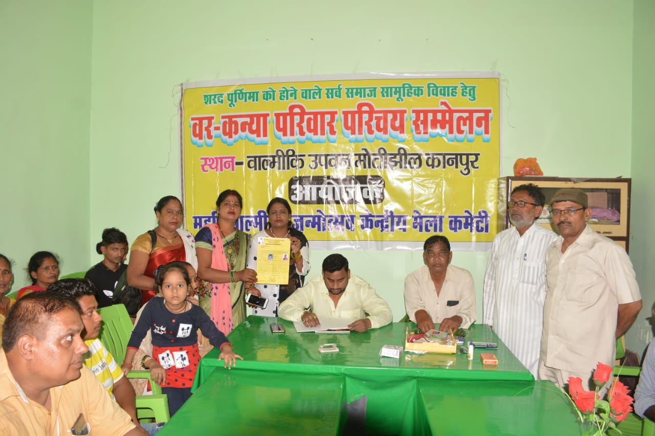 महर्षि बाल्मीकि जन्मोत्सव केन्द्रीय मेला कमेटी की ओर से वाल्मीकि उपवन मोतीझील में सर्वसमाज सामूहिक विवाह हेतु परिचय सम्मेलन का आयोजित किया गया है। परिचय सम्मेलन में 25 जोड़ों ने विवाह हेतु रजिस्ट्रेशन कराया। परिचय सम्मेलन में हुई बैठक में निर्णय लिया गया कि इस वर्ष शरदपूर्णिमा के दिन 9 अक्टूबर को 51 जोड़ों का सामूहिक विवाह लान नं0-1 मोतीझील में किया जायेगा। बाल्मीकि जयन्ती के अवसर पर सांस्कृति कार्यक्रम के साथ भण्डारे की भी व्यवस्था की जायेगी।परिचय सम्मेलन व बैठक में प्रमुख रूप से मेला कमेटी के अध्यक्ष रामजियावन सागर, महामंत्री अरूण समुद्रे संचालक मण्डल के सदस्य प्रकाश हजारिया, राम गोपाल समुन्द्रे सरपंच, डी०डी०सुमन, माता प्रसाद, राम स्वरूप, मुन्ना पहलवान, श्रीकान्त बेरीसाल, नरेन्द्र खन्ना, मुन्ना हजारिया, सुरेश भारती, हर भजन ननहेट, शिवराम मकोरिया, बबलू, खोटे, आरती त्रिवेदी, प्रतिभा चौधरी, कुसुम बख्शी, बृजेन्द्र मखोरिया, सुनील सुमन, सचिन सबेरा, राम गोपाल चौधरी. विनोद एडवोकेट, धनुश्याम गहरवार, प्रान्शू चौधरी, धरमू, विकास साहू, प्रेमा यादव सहित काफी संख्या में वर कन्या और उनके परिवार ने परिचय सम्मेलन में भाग लिया।