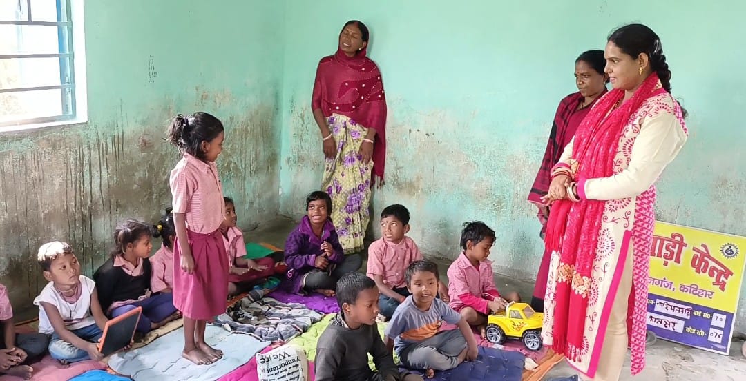 हसनगंज प्रखंड स्थित नारियलबाडी़ गांव आंगनबाड़ी केंद्र संख्या 076 का मंगलवार को महिला प्रवेक्षिका रुबि कुमारी ने निरीक्षण किया। निरीक्षण दौरान बच्चों की उपस्थिति केंद्र के रखरखाव सहित बिंदुओं पर आंगनबाड़ी सेविकाओं को निर्देश दिया गया। महिला पर्यवेक्षिका रूबी कुमारी ने बताई की केंद्र निरीक्षण दौरान बच्चों की उपस्थिति कम पाई गई है, जिसको लेकर सेविका को निर्देश दिया गया है कि बच्चों की उपस्थिति में सुधार लाएं। साथ ही बच्चों को ड्रेस कोड में पहुंचने के प्रति जागरूक करें। महिला प्रवेक्षिका ने पोषाहार सहित अन्य बिंदुओं पर बारीकी से जांच की। बताया मासिक निरीक्षण दौरान बच्चों को कविता लेखन आदि के बारे में बताया गया। साथ ही केंद्र की नियमित साफ-सफाई और बच्चों की उपस्थिति पर ध्यान देने की बात कही। बताया हर हाल में नोनिहाल बच्चों सरकार से मिलने वाली सुविधा प्राप्त हो। बच्चे सरकार की सभी योजनाओं से लाभान्वित हो इसका हर हाल में ध्यान रखें। इस अवसर आंगनबाड़ी सेविका व सहायिका थे।