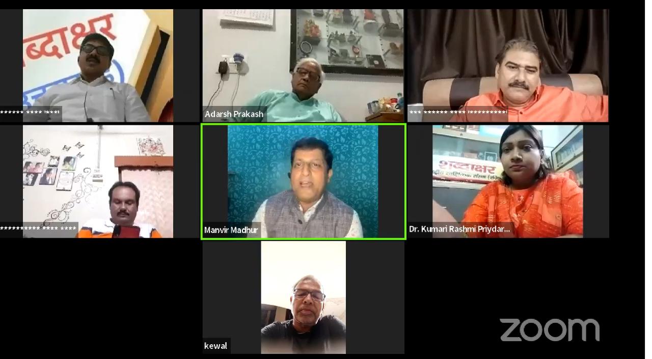 राष्ट्रीय साहित्यिक संस्था ‘शब्दाक्षर’ की त्रैमासिकी ‘शब्दाक्षर पत्रिका’ के अप्रैल-जून 2022 अंक का लोकार्पण अंतर्राष्ट्रीय कवि मनवीर मधुर, प्रधान अतिथि-सह-शब्दाक्षर के राष्ट्रीय अध्यक्ष रवि प्रताप सिंह, कार्यक्रम अध्यक्ष-सह-शब्दाक्षर उत्तराखंड प्रदेश अध्यक्ष महावीर सिंह ‘वीर’, मुख्य अतिथि-सह-उड़ीसा प्रदेश अध्यक्ष किशन खंडेलवाल, विशिष्ट अतिथि-सह-शब्दाक्षर तमिलनाडु प्रदेश अध्यक्ष केवल कोठारी, शब्दाक्षर राष्ट्रीय उपाध्यक्ष सत्येन्द्र सिंह ‘सत्य’, सहित ‘शब्दाक्षर’ के अन्य सम्मानित साहित्यकारों की गौरवमय उपस्थिति में सफलतापूर्वक सम्पन्न हुआ। लोकार्पण समारोह का शुभारंभ कार्यक्रम का संचालन कर रहीं ‘शब्दाक्षर’ की राष्ट्रीय प्रवक्ता-सह-प्रसारण प्रभारी प्रो. डॉ. रश्मि प्रियदर्शनी के द्वारा प्रस्तुत सुमधुर स्वरचित सरस्वती वंदना “ज्ञान दे, सुर तान दे, माँ शारदे, वरदान दे। अज्ञानता का नाश हो, सत्कर्म पर विश्वास हो, भव बंधनों से मुक्त कर, सबके हृदय में स्थान दे…” से हुआ। तत्पश्चात हरियाणा की प्रदेश साहित्य मंत्री मीनाक्षी शर्मा ने मंचासीन अतिथियों के साहित्यिक योगदान पर प्रकाश डालते हुए स्वागत वक्तव्य प्रस्तुत किया। लोकार्पण विभूति कवि मनवीर मधुर, पत्रिका के प्रधान संपादक रवि प्रताप सिंह व संपादक डॉ आदर्श प्रकाश सहित मंचासीन सभी गणमान्य अतिथियों ने पत्रिका के सफल लोकार्पण पर खुशी जताते हुए पत्रिका की सारगर्भित समालोचनात्मक समीक्षा की। राष्ट्रीय अध्यक्ष श्री सिंह ने बताया कि ‘शब्दाक्षर’ की इस त्रैमासिकी में देश के प्रतिष्ठित रचनाकारों द्वारा विभिन्न पद्य तथा गद्य विधाओं में लिखित स्तरीय रचनाएँ संकलित हैं। शब्दाक्षर पत्रिका लोकार्पण समारोह के द्वितीय सत्र में सरस काव्य अनुष्ठान का आयोजन हुआ जिसमें मंचासीन अतिथियों तथा आमंत्रित रचनाकारों ने एक से बढ़कर एक कविताएँ पढ़ीं। कवि मनवीर मधुर ने मर्यादा पुरुषोत्तम श्रीराम को समर्पित, “मन में राम नहीं हों, तो ये तन रावण हो जाता है….राम भक्त को लंका में भी राम भक्त मिल जाता है…बिना राम के तो रावण भी मोक्ष नहीं पा सकता है” जैसी ओजमयी स्वरचित पंक्तियों से काव्यानुष्ठान को राममय बना डाला। उनकी “जीवन में प्यार जो करो तो इतना करो कि होठ चुप अँखियों का पानी बोलने लगे…” पंक्तियों पर खूब वाहवाहियाँ लगीं। रवि प्रताप सिंह की कविता, “भाव की अभिव्यंजना में खो गया हूँ आज कल, मैं लिखूँ कविता कोई, या लिखूँ कोई ग़ज़ल?..”, महावीर सिंह वीर के मुक्तक “भाव में निज राष्ट्र के प्रति भक्ति होनी चाहिए, ज़िंदगी भर सिर्फ अपना ग़म लिखा तो क्या लिखा, लेखनी हर दर्द की अभिव्यक्ति होनी चाहिये..”, कवयित्री अंजू छारिया की, “तुम मनाओगे आकर मुझे 