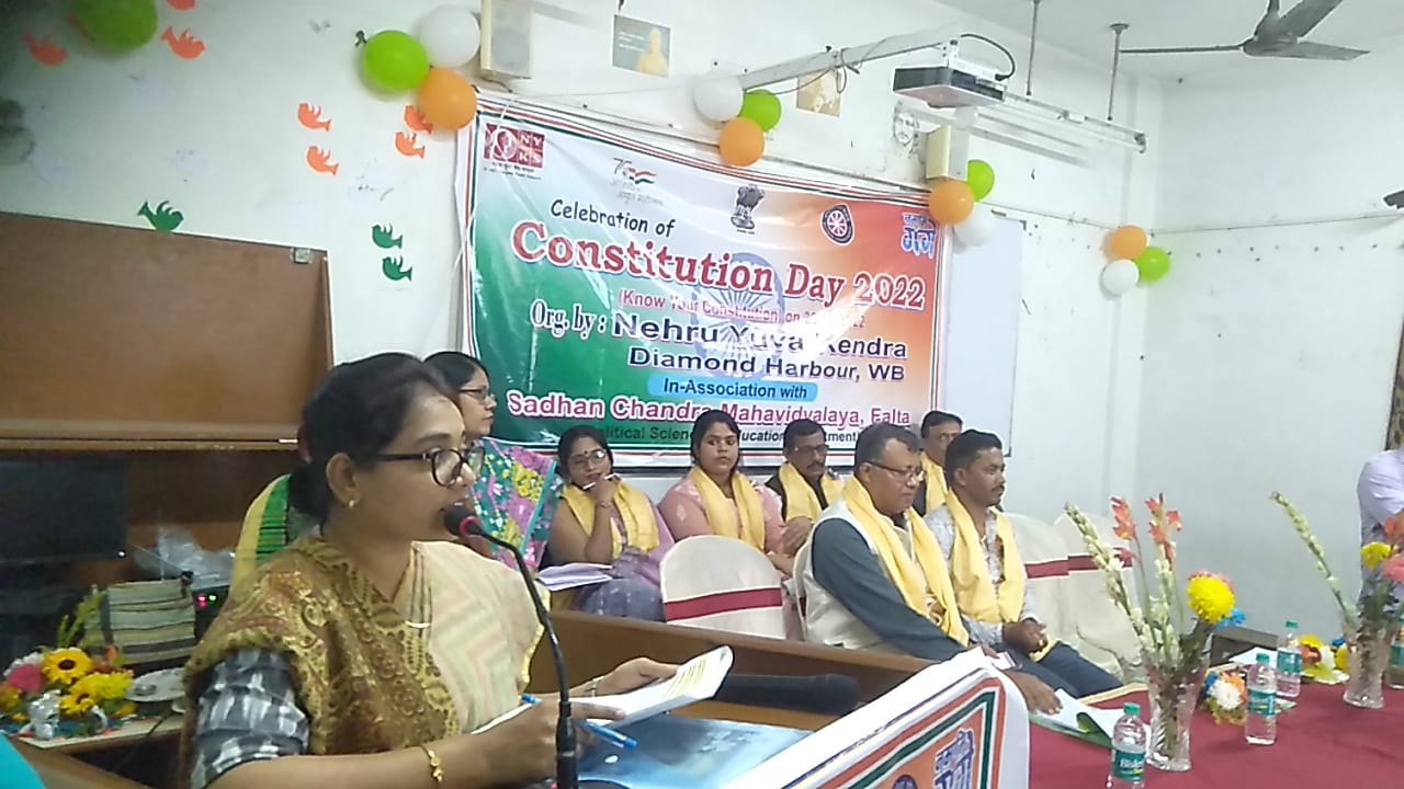 সারা রাজ্যের পাশাপাশি এদিন ২৬ই ডিসেম্বর সেলিব্রেশন অফ কনস্টিটিউশন ডে ২০২২ উপলক্ষ্যে নেহরু যুব কেন্দ্রের সহযোগিতায় সাধন চন্দ্র মহবিদ্দ্যালয়এর উদ্যোগে আজ শনিবার এই দিনটি অন্যান্য সকল সচেতন মূলক কর্মসূচির পাশাপাশি বিভিন্ন অনুষ্ঠানের মধ্যে দিয়ে এই দিনটি পালন করা হয়। ফলতা সাধন চন্দ্র মহবিদ্যালয় প্রাঙ্গণে বাবা আম্বেদকরের মাল্যতে মালা দিয়ে বরণ করে প্রদীপ প্রজ্জ্বলন মাধ্যমে এই অনুষ্ঠিত শুরু হয়।উপস্থিত ছিলেন সাধন চন্দ্র মহাবিদ্যালয়ের প্রিন্সিপাল ড: এস,কে ফজলুল হক,ফলতা বিধায়ক শঙ্কর কুমার নস্কর,অশোক সাহা যুব কেন্দ্রের ডেপুটি ডিরেক্টর,গুরুপদ মণ্ডল জি বি প্রেসিডেন্ট সাধন চন্দ্র মহাবিদ্যালয়ের ,সুজত ভান্ডারী নেহরু যুব কেন্দ্রে, শেলী দত্ত law স্টুডেন্ট, মুমতাজুল মোল্লা ও মেহেন্দি হাসান জি বি মেম্বার সাধন চন্দ্র মহাবিদ্যালয়ের ,সমাজ সেবী সুরঞ্জন চক্রবর্তি,এডভোকেট তপন কান্তি মণ্ডল,1স্পিকার দেবারতি মণ্ডল এসিস্ট্যান্ট প্রফেসর নিউ আলিপুর,উজ্জ্বল প্রমানীক অফিস স্টাফ নেহরু যুব কেন্দ্র,সাঈদুল খান,কৃষাণ সাহা সহ সাধন চন্দ্র মহাবিদ্যালয়ের অন্যান্য প্রফেসর থেকে শুরু করে সকল ছাত্র ছাত্রীরা।