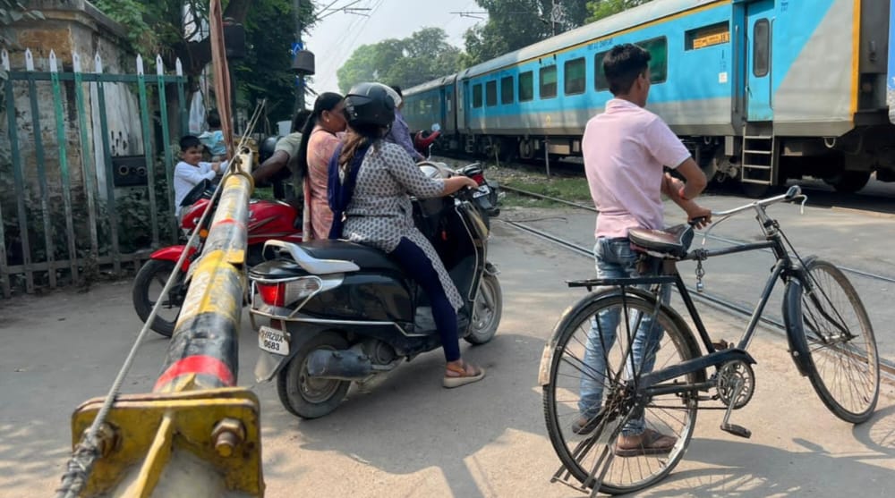 रैलवे क्रॉसिंग में कई हादसों के बावजूद नहीं जागा रेलवे प्रशासन, जल्दबाजी के चलते बीते दिन युवक आया था ट्रेन की चपेट में, क्रासिंग में कैमरे लगने के बावजूद बंद क्रासिंग पार करते समय राहगीर खुद की जान को डाल रहें खतरे में, जल्दबाजी में पुलिस जवान भी लगा रहें अपनी जान की बाजी। ट्रेन गुजरते समय राहगीर बेखौफ होकर रेलवे ट्रैक के बगल में होते हैं खड़े। जयपुरिया क्रॉसिग समेत शहर की सभी क्रासिंग का यही हाल ।