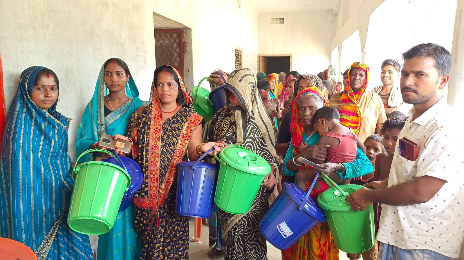 स्वच्छता अभियान के तहत कचरा के रखाव को लेकर बाल्टी का हुआ वितरण ।