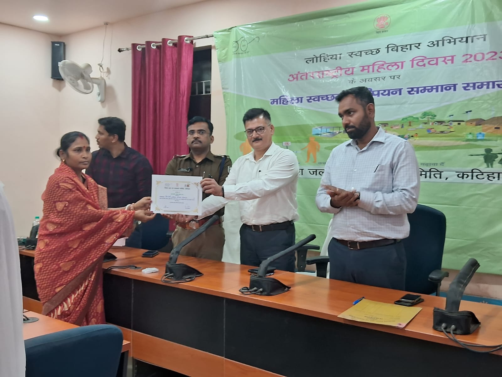 लोहिया स्वच्छ बिहार अभियान – द्वितीय चरण के अन्तर्गत ,स्वच्छता के क्षेत्र मे महत्वपूर्ण योगदान हेतु अन्तराष्ट्रीय दिवस के मौके पर जिले की दस महिला जनप्रतिनिधि व अधिकारी को जिलाधिकारी ने प्रशस्ति पत्र प्रदान किये । जिला जल एवं स्वच्छता समिति के द्वारा अन्तराष्ट्रीय महिला दिवस के मौकेपर स्वच्छता के क्षेत्र मे उल्लेखनीय योगदान देनेवाली महिलाओं को सम्मानित कर उनका उत्साह वर्धन करने के उद्देश्य से डीआरडीए सभागार मे सम्मान समारोह का आयोजन किया गया।शनिवार को डीआरडीए सभागार मे स्वच्छता के क्षेत्र मे जिले की कुल दस महिलाओं को प्रशस्ति पत्र देकर जिलाधिकारी उदयन मिश्र द्वारा सम्मानित किया गया।स्वच्छता सम्मान से सम्मानित होनेवाली दस मे से छः महिला जनप्रतिनिधि तो चार महिला अधिकारी शामिल हैं।लोहिया स्वच्छ बिहार अभियान – द्वितीय चरण मे स्वच्छता के क्षेत्र मे महत्वपूर्ण योगदान हेतु मनिहारी प्रखंड क्षेत्र के दिलारपुर पंचायत की मुखिया हेमा देवी को जिलापदाधिकारी उदयन मिश्र ने प्रशस्ति पत्र देकर सम्मानित किया ।इस मौके पर उप विकास आयुक्त सौरभ सूमन, पुलिस अधिक्षक जीतेन्द्र कुमार ,सहित अन्य अधिकारी मौजूद थे।
