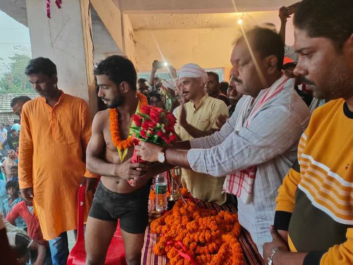 कटिहार जिले के समेली प्रखंड के अंतर्गत बखरी गांव में काली पूजा के अवसर पर कुश्ती का आयोजन किया गया। जिसमें राजस्थान, हरियाणा, गोरखपुर, झारखंड और बिहार से प्रतिभागियों ने भाग लिया। इस आयोजन के मुख्य अतिथि स्थानीय जदयू विधायक विजय सिंह, जिला पार्षद कोमल कुमारी, स्थानीय मुखिया राज कुमार मंडल, सुशील शर्मा, रूपेश कुमार सिंह आदि अन्य गणमान्य लोग उपस्थित थे। इस प्रतियोगिता में शामिल मनीष कुमार को विजेता घोषित किया गया। विधायक विजय सिंह के द्वारा नगद राशि, एवं साइकिल दिया गया। वही उपविजेता हरियाणा के मुकेश कुमार रहे। इस आयोजन को सफल बनाने मैं युवा जदयू के जिला अध्यक्ष रोशन कुमार, सुनील सिंह, कुंदन कुमार ,चंदन कुमार ,पूर्व जदयू प्रखंड अध्यक्ष बखरी सूर्य देव मंडल, सहित अन्य लोगों ने प्रमुख भूमिका निभाई।
