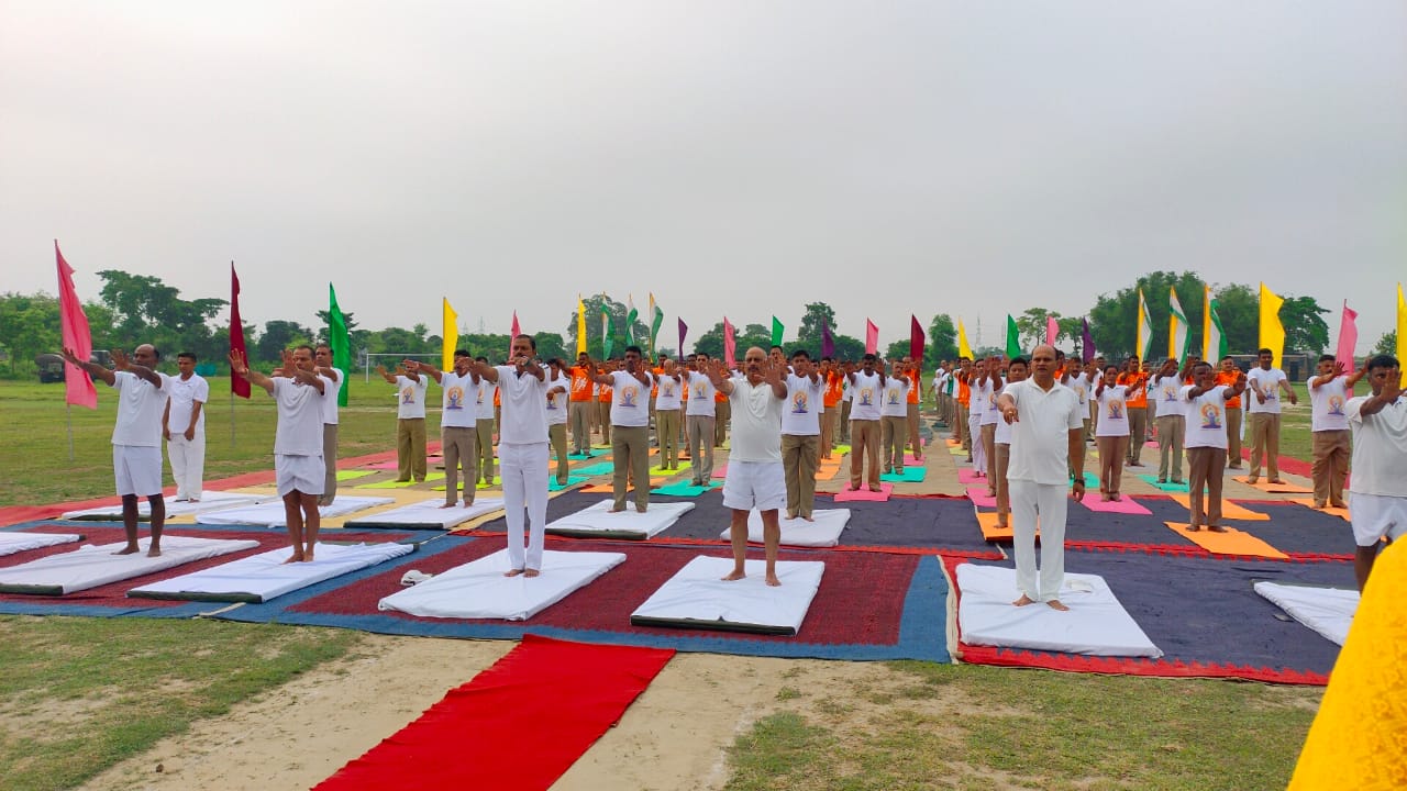 अंतर्राष्ट्रीय योग दिवस के अवसर पर 48 वीं वाहिनी भारत तिब्बत सीमा पुलिस बल सिसिया कोढ़ा के परेड ग्राउंड में बुधवार को योग अभ्यास किया गया। इस अवसर पर मुख्य अतिथि के रूप में उपमहानिरीक्षक आर पी एस रघुवंशी गंगटोक, कमांडेंट रविंद्र कुमार ने योगाभ्यास किया ।कार्यक्रम के अंत में अधिकारियों द्वारा परिसर में पौधरोपण भी किया गया। मौके पर उपमहानिरीक्षक ने अपने संबोधन में कहा कि योग से मनुष्य शारीरिक एवं मानसिक रूप से स्वस्थ रहता है। योग प्राचीन समय से हमारे जीवन का अभिन्न अंग रहा है ।योग सामूहिक रूप से कार्य करने की प्रेरणा प्रदान करता है ।वही पौधे हमारे जीवन को औषधि प्रदान करता है एवं पर्यावरण को भी संरक्षित करता है ।प्रत्येक व्यक्ति को पर्यावरण संरक्षण के महत्व को समझना चाहिए। इस अवसर पर सेनानी रविंद्र कुमार ने जवानों को संबोधित करते हुए कहा कि बच्चे बड़े या बुजुर्ग हों सभी को बेहतर स्वास्थ्य के लिए शारीरिक रूप से सक्रिय रहना बेहद जरूरी होता है ।व्यक्ति अत्यधिक व्यस्तता के कारण पहले की तरह सक्रिय नहीं दिख रहा है ।ऐसे में स्वस्थ रहने के लिए घर में ही समय निकालकर योग प्रतिदिन करना चाहिए। कहा गया है कि स्वस्थ शरीर में ही स्वस्थ मन का विकास होता है।